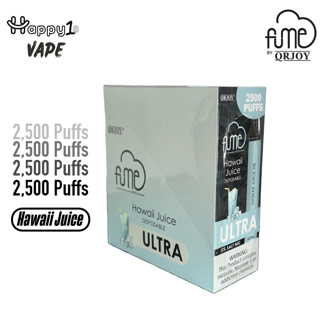 Fume Ultra ( 2500 Puffs) is a pre-filled disposable vape pen that lasts 10 times longer than traditional 300-puff e-cigarette devices. The plus-size disposable vaping kit generates 2500 hits of 5% strength salt nicotine flavor.